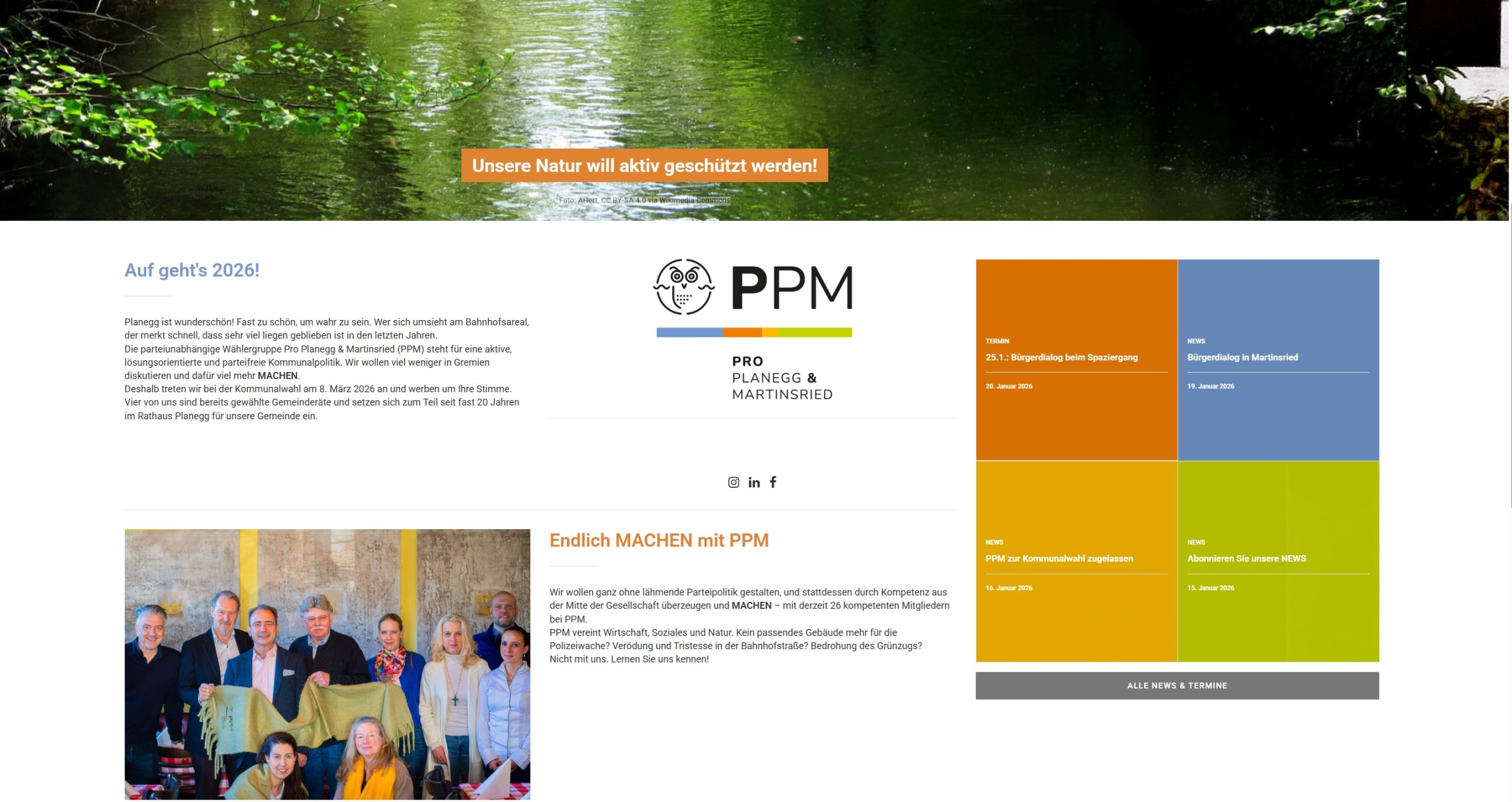 ➧ Website-Screendesign, Realisierung und kontinuierliche Texterstellung für die Kommunalwahl-Präsenz von Pro Planegg & Martinsried