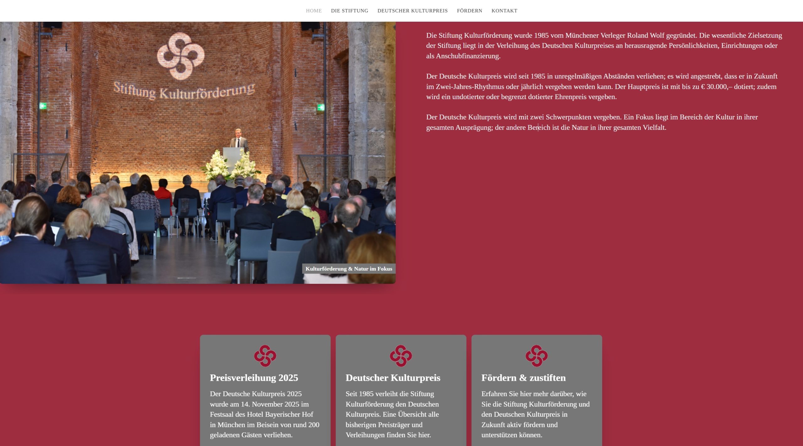 ➧ Planung, Screendesign, Umsetzung und Texterstellung für den Relaunch Webpräsenz der Stiftung Kulturförderung (Deutscher Kulturpreis)
